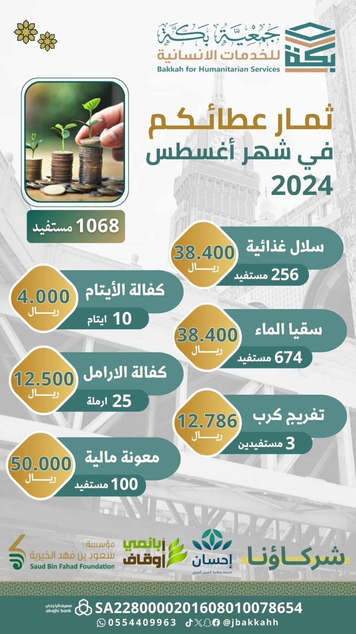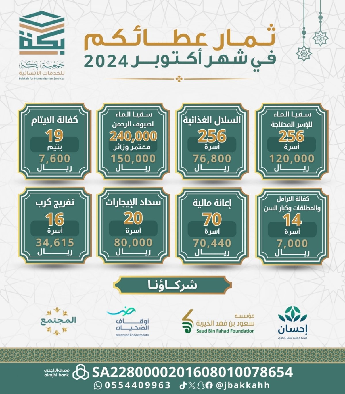 تأسست في 5/4/1444ه ونطاقها الجغرافي مكة المكرمة وتقدم خدماتها للفقراء والأرامل والمطلقات والأيتام والمساكين وزوار البلد الحرام.